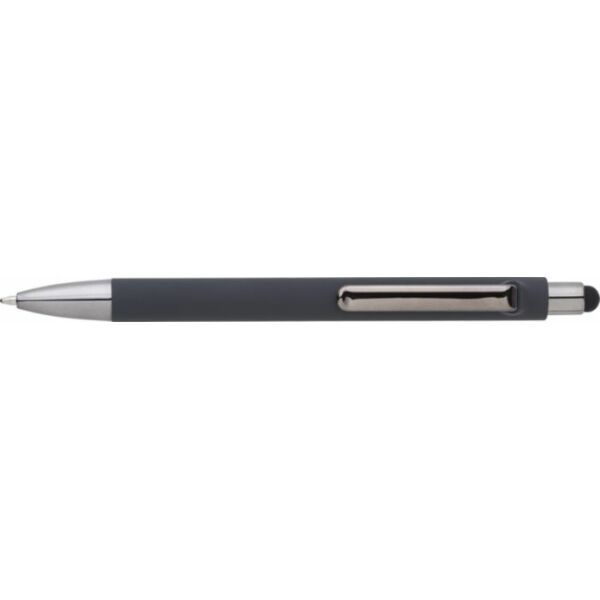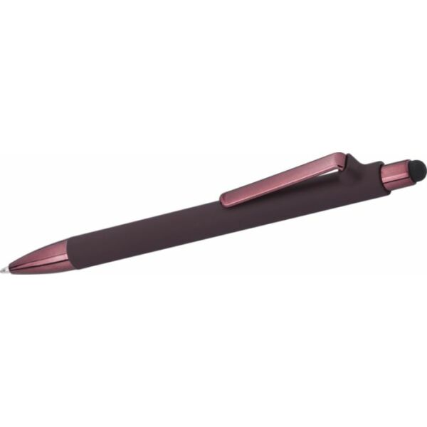 BS balpen met matte afwerking en glanzende UV-lakkleurdetails. Rubberen tip voor capacitieve schermen. Extra gewicht voor een luxueuze ervaring. Blauwe inkt.